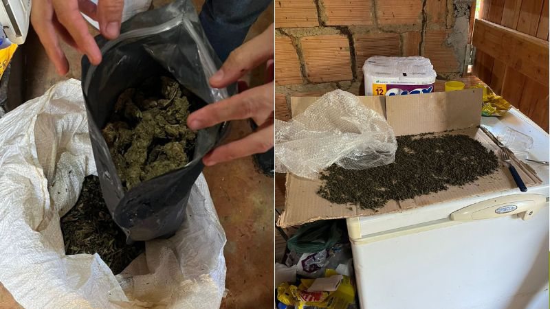 Durante a ação, três homens que faziam a segurança da propriedade atiraram contra os policiais e fugiram. Ninguém ficou ferido. Foram apreendidos mais de meia tonelada de maconha, 65 munições calibre .380, um carregador de pistola municiado, além de balanças de precisão, prensa, dichavadores e outros instrumentos comumente usados no narcotráfico. Também foram encontrados uma máquina de lavar e um freezer, utilizados na preparação da maconha conhecida como ice, e uma produção de skunk, variedade mais potente da droga.