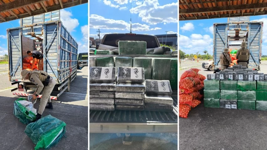 O caminhão foi conduzido ao pátio do posto da PM, onde os militares verificaram a carga declarada como cebolas. No entanto, dentro da carga foram encontrados 501 tabletes de substância análoga à cocaína.