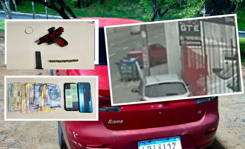 Conforme apuração do Informe Baiano, os suspeitos estavam a bordo de um Fiat Siena vermelho, que também é utilizado como veículo de aplicativo. Durante a abordagem, os policiais encontraram uma pistola Taurus calibre .45 com numeração suprimida, 2 carregadores, 14 munições calibre .45, 2 frascos contendo cocaína, 2 frascos com K9 (supermaconha), 2 aparelhos celulares e R$ 1.409,00 em espécie. O veículo seria de propriedade de Cesar Ferreira da Silva, que também foi detido.