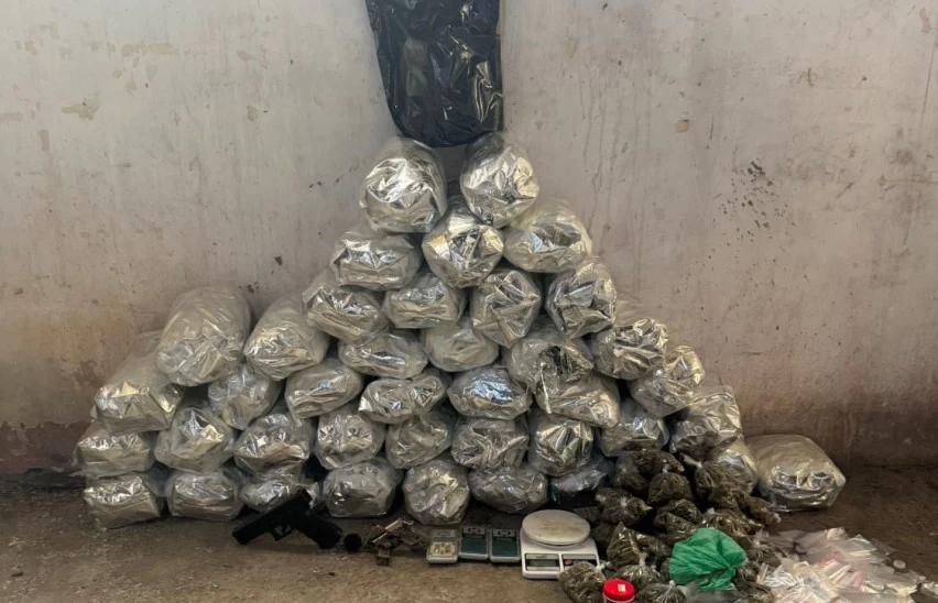 No decorrer das buscas, foram encontrados uma pistola calibre 635, uma réplica de arma de fogo, cerca de 20kg de maconha e quatro balanças de precisão.