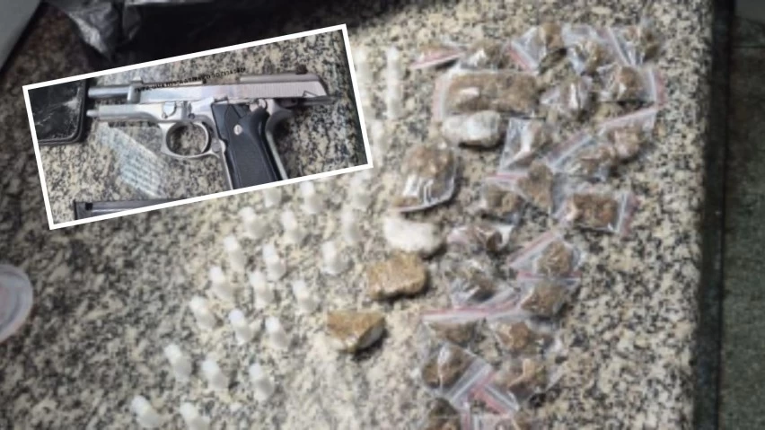 Durante a abordagem, os agentes encontraram com o jovem um aparelho celular com restrição de roubo e um coldre, acessório utilizado para portar arma de fogo na cintura.