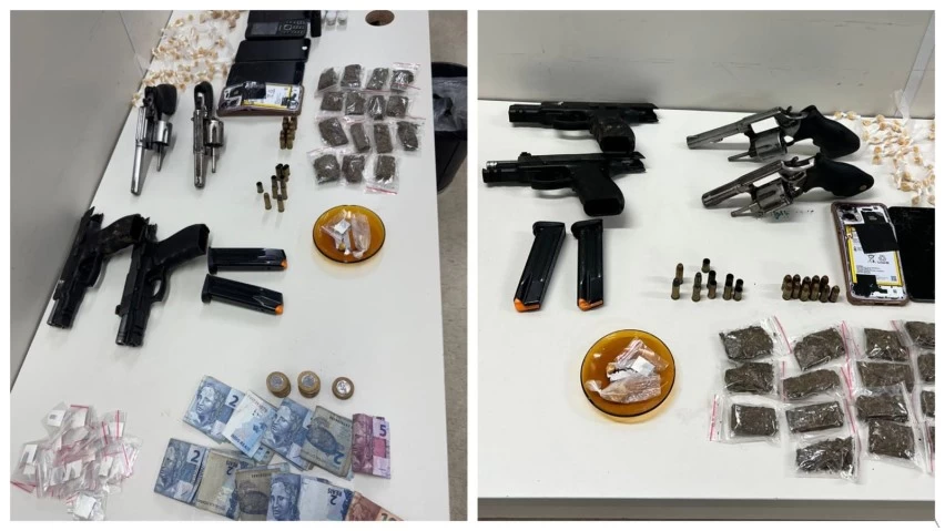 Na ação, os policiais apreenderam duas pistolas calibre .40, dois revólveres calibre .38, seis munições calibre .40, cinco munições calibre .38, diversas porções de crack, quinze porções de maconha, R$121 em espécie e seis celulares. Todo o material foi apresentado na Delegacia de Homicídios e Proteção à Pessoa (DHPP).